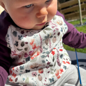 Couleur de biais jersey recommandée : Violet chiné – Brique – Bleu poudre bio – Sauge bioVert clairBleu fonçé chinéÉcru