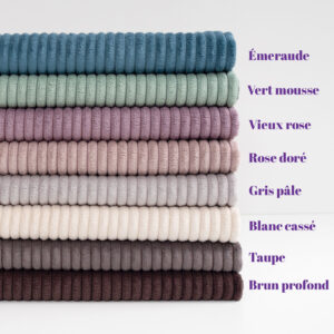 Un gros corduroy d’une grande qualité très tendance actuellement pour la confection de sac, sac à dos, trousse, projets de décoration et même du recouvrement. Ce beau tissu a des côtes moelleuses de 1cm!