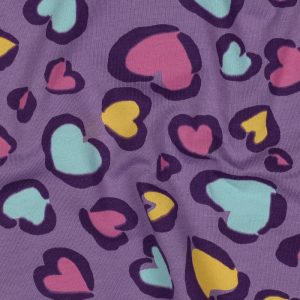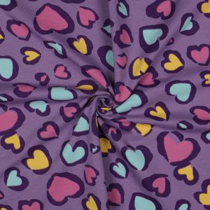 Un tissu joyeux et coloré, parsemé de petits cœurs multicolores sur fond violet. Son motif à la fois ludique et tendance est idéal pour des créations vibrantes, qu’il s’agisse de vêtements confortables pour enfants ou adultes : chandails, leggings, robes décontractées, pyjamas ou accessoires. Grâce à sa composition douce en coton et sa touche de spandex, ce sweat léger est extensible, agréable à porter et facile à coudre.