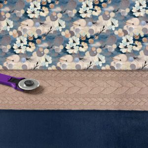 - 1 panneau de 33cm X 73cm de French Terry Des fleurs dans les bulles – Bleu