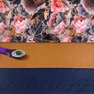 - 1 panneau de 33cm X 73cm de jersey de coton – La géométrie des fleurs – bleu foncé