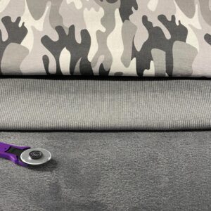 - 1 panneau de 33cm X 75cm de French Terry brossé camouflage – Gris