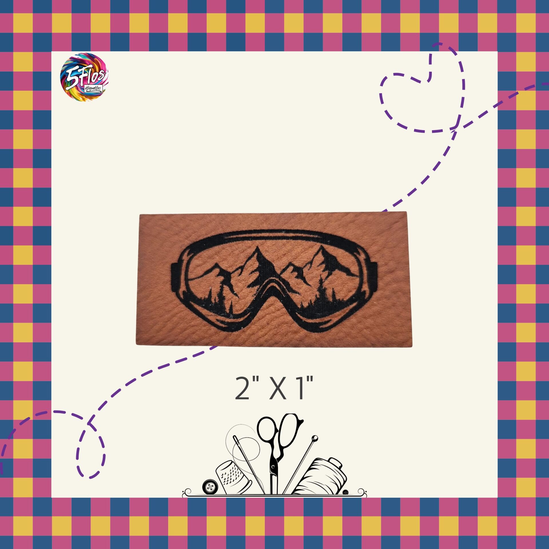 Étiquette à coudre – Lunette de ski – 2″ X 1″