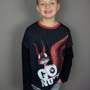 Ce French Terry est l’oeuvre du designer Thorsten Berger. Il s’agence parfaitement au panneau « Un écureuil affolé – Brun fonçé ligné ».