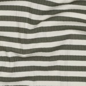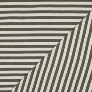 Jersey côtelé (Rib) ligné de fils teints – Sauge / Blanc cassé