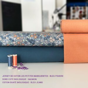 Couleur de bord côte (ribbind) recommandée : Saumon (Bio) – Bleu jeans (Bio) – Menthe (Bio)