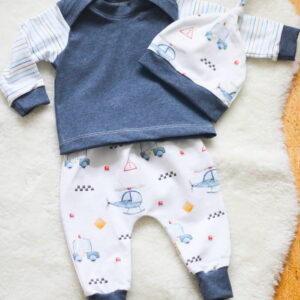 Couleur de bord côte (ribbind) recommandée : Bleu poudre (bio) – Moutarde (bio) – Gris chiné