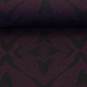 Ce jersey associe la richesse d’un prune profond à l’intensité d’un noir ébène pour un motif géométrique élégant et mystérieux. Idéal pour des tenues de soirée ou des ensembles du quotidien haut de gamme, il confère à chaque création une allure unique et raffinée.