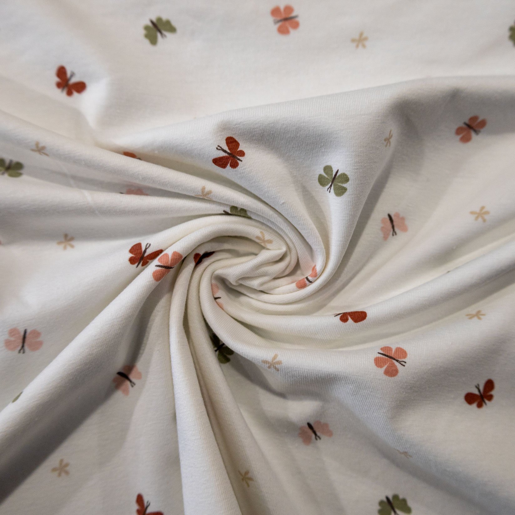 Un tissu de qualité certifié Oeko-Tex® Standard 100, sécuritaire pour les bébés et les enfants. Souple, respirant et d’un confort inégalé, il accompagnera toutes vos créations de saison : t-shirts, pyjamas, robes, leggings, barboteuses ou accessoires douillets.
