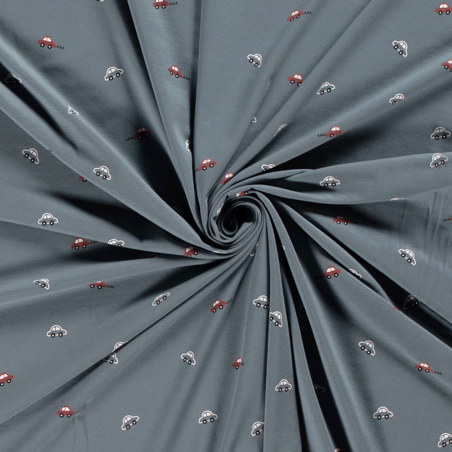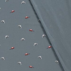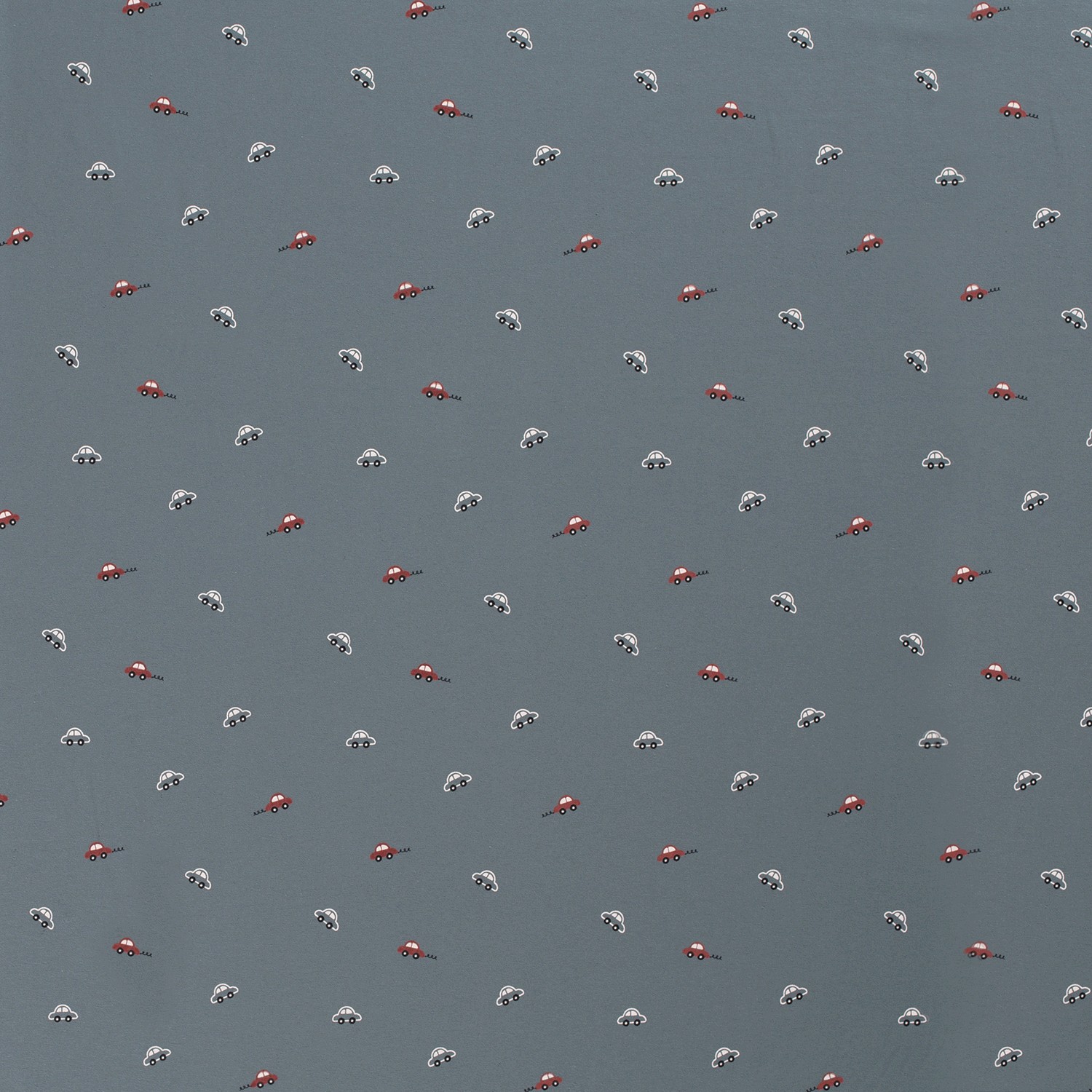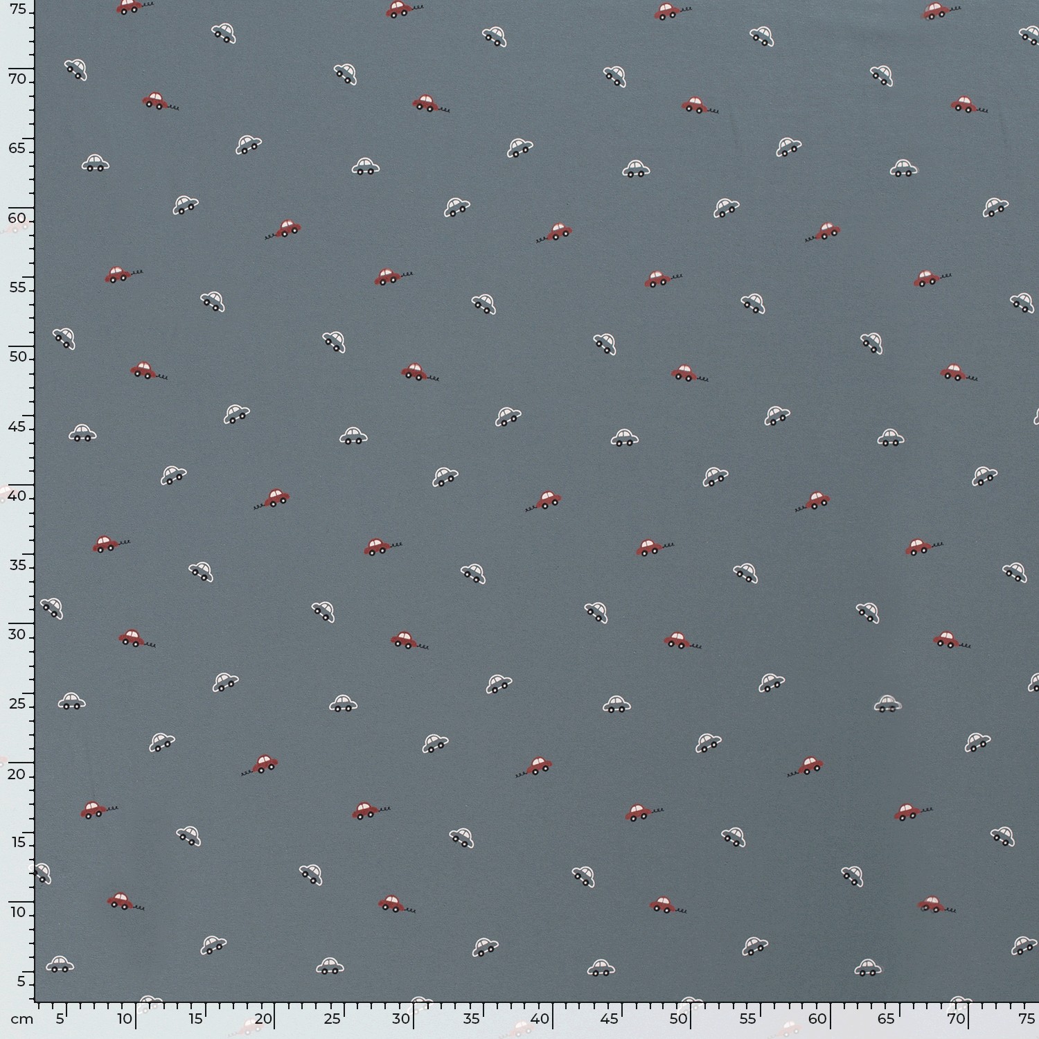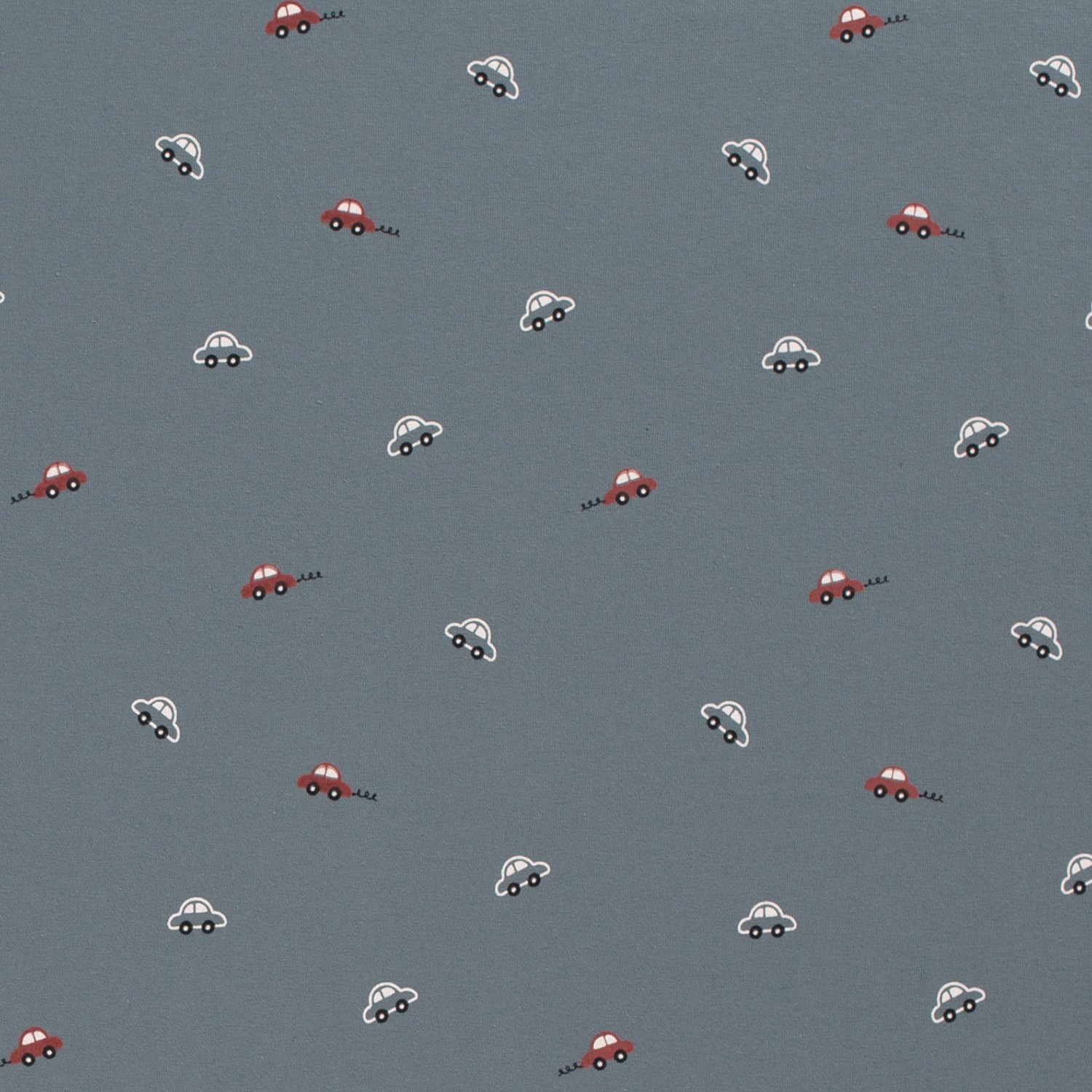 Son adorable motif de petites voitures rouges, blanches et grises sur fond bleu apporte une touche ludique et intemporelle aux créations pour enfants.
