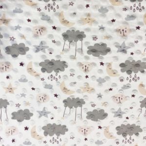 Le minky est un tissu rempli de douceur, parfait pour confectionner les doudous, pyjamas, pantoufles et vêtements pour bébés et enfants. Peut aussi être utiliser pour faire des doublures. Cette fibre importée d’Europe est douce d’un seul côté.