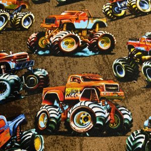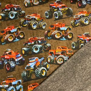 Un motif plein de puissance et d’adrénaline! Ce molleton met en vedette de grands camions Monster Trucks aux couleurs éclatantes, prêts à bondir sur leurs roues géantes. Avec son intérieur doux et chaud, il est idéal pour confectionner des chandails, joggings, pyjamas ou couvertures qui plairont aux amateurs de sensations fortes, petits comme grands.