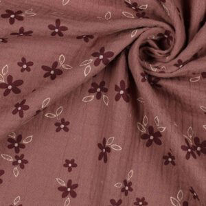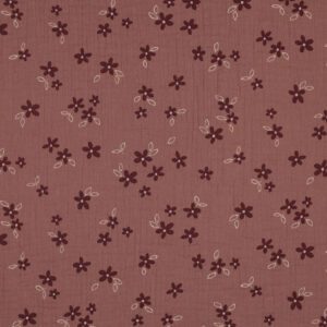 Mousseline de coton double gaze petite fleur – Vieux rose fonçé