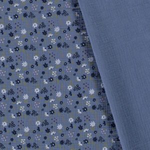 Mousseline de coton double gaze – Petites fleurs bleu indigo