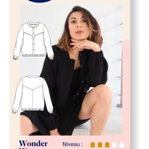 Wonder Woman, c’est un bombers revisité à la sauce Majam, à la fois stylé et facile à porter. Inspiré du teddy classique, ce modèle propose deux finitions : à coudre en maille (sweat, french terry) ou en chaîne et trame (jacquard, lainage, gabardine). Un patron polyvalent qui s’adapte à toutes les envies textiles.