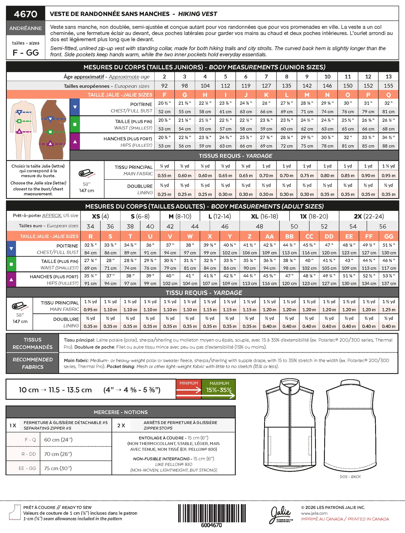 Patron Jalie 4670 – ANDRÉANNE – Veste de randonnée