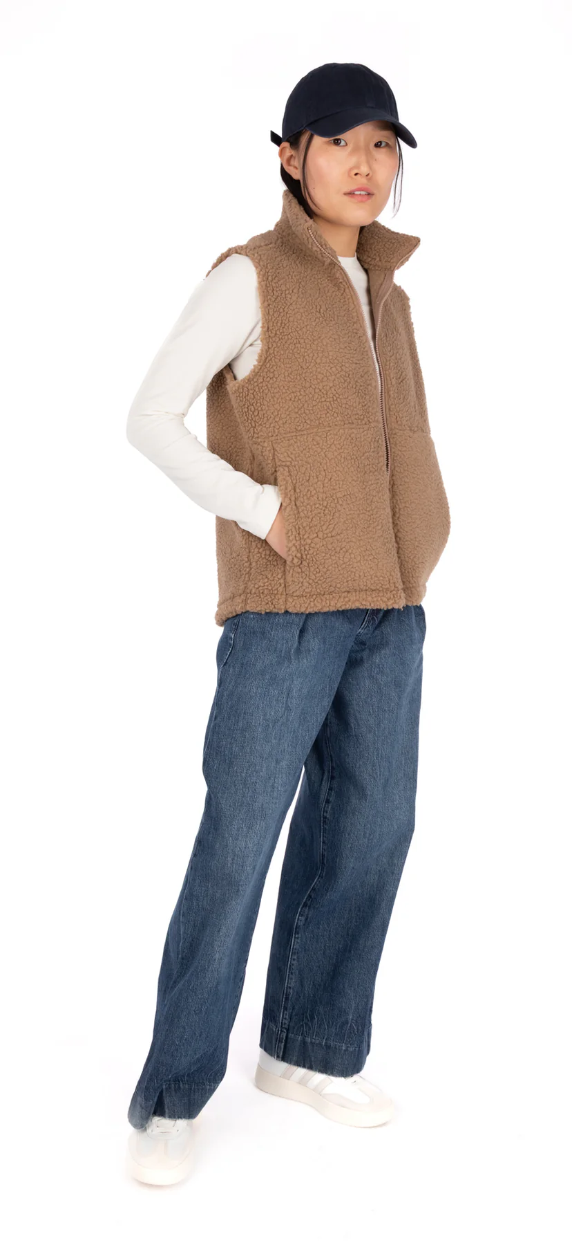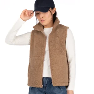 La veste a un col cheminée, une fermeture éclair au devant, deux poches latérales pour garder vos mains au chaud et deux poches intérieures. L’ourlet arrondi au dos est légèrement plus long que le devant.