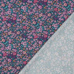 Popeline de coton Petites fleurs d’été – Pétrole fonçé