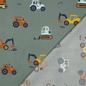 Popeline de coton Petits véhicules des travail – Vert sauge