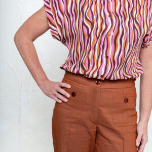 Tous les tissus sont disponible en vente dans la boutique. Les instructions de montage sont de base en français, pour couturières avec un minimum d’expérience.