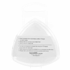 Cette craie incroyable disparaît sur la plupart des tissus dans les 72 heures ou lorsqu’ils sont repassés. La formule spéciale disparaît habituellement environ 72 heures après avoir marqué le linge, cependant le temps qu’il faut pour disparaître sera proportionnel à la force appliquée au marquage. Elle vient dans un contenant en plastique pour le rangement et pour empêcher la craie de se briser.
