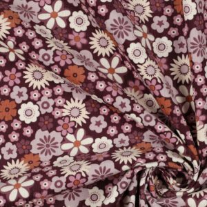 Velours côtelé Babycord Les marguerites – Violet fonçé